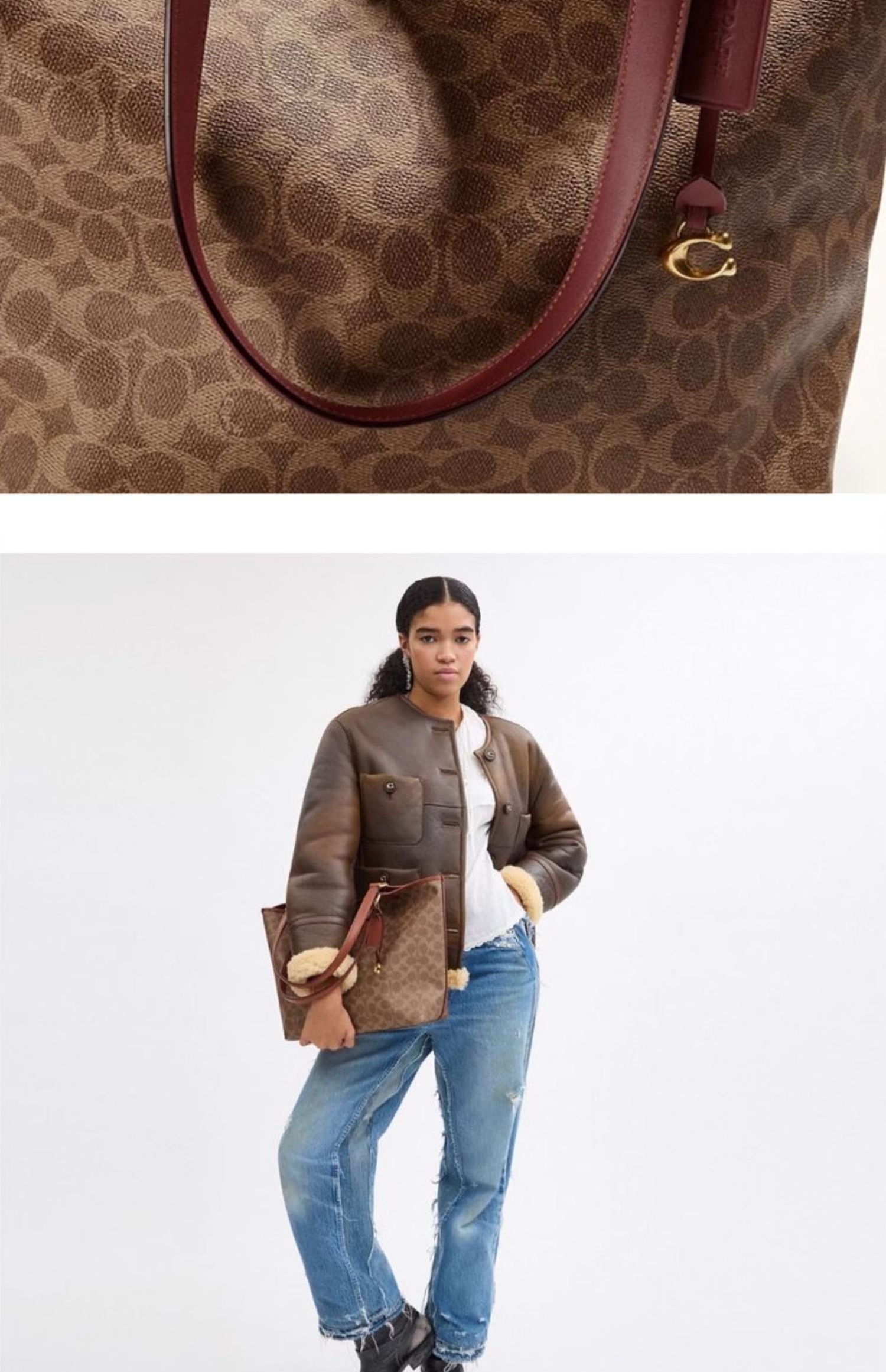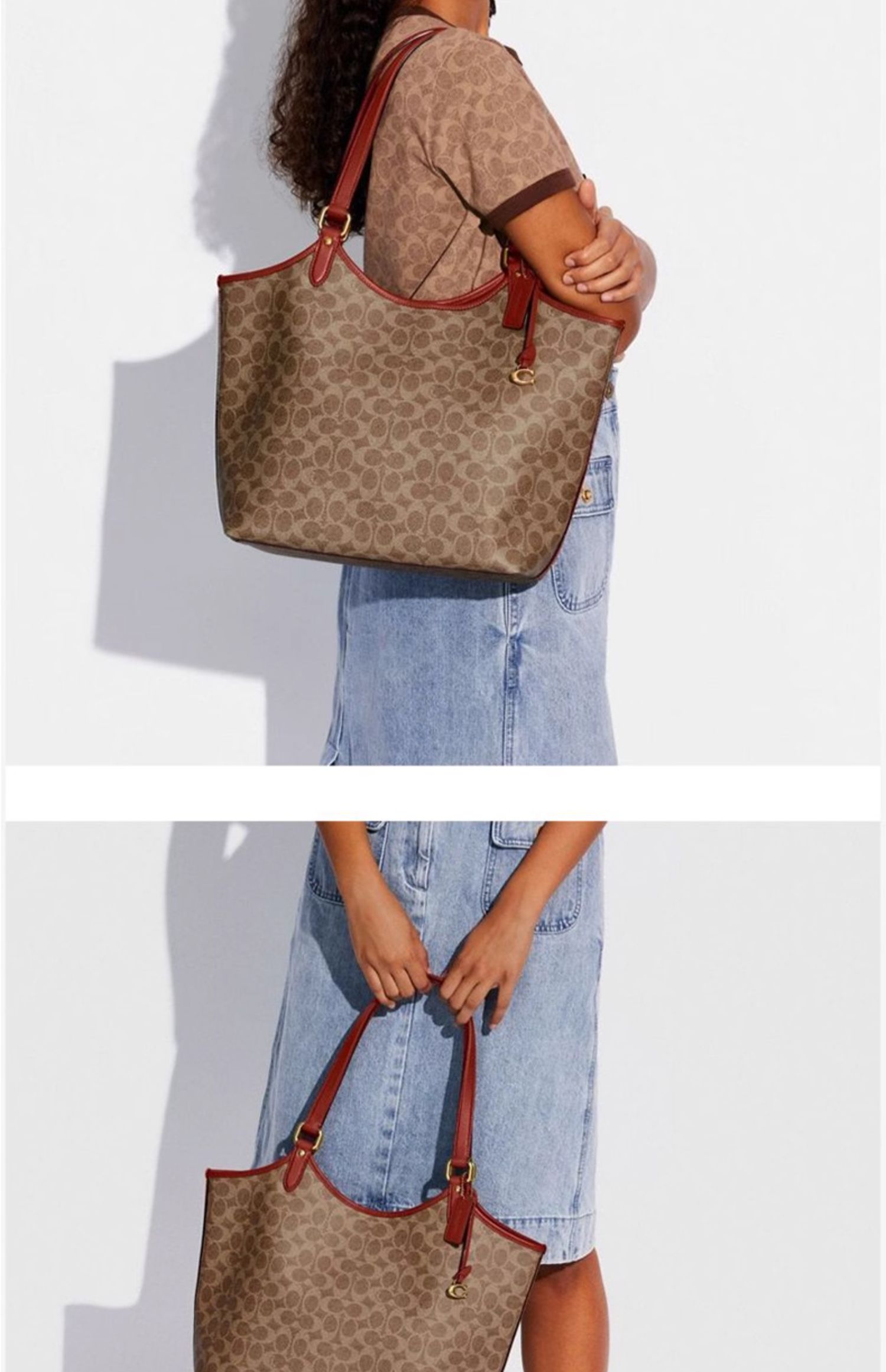 蔻驰女士老花DAY托特包单肩包
