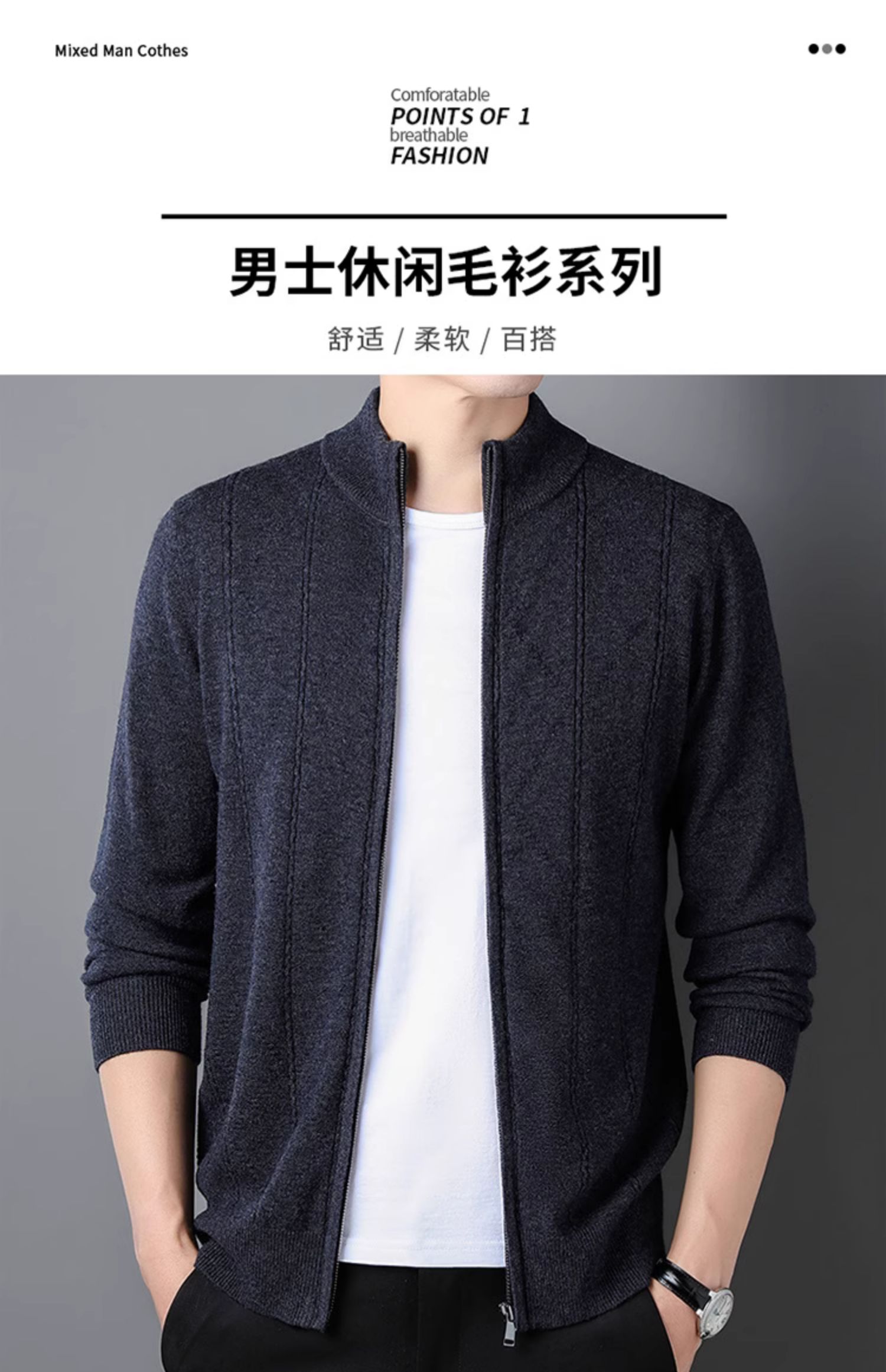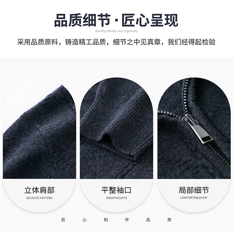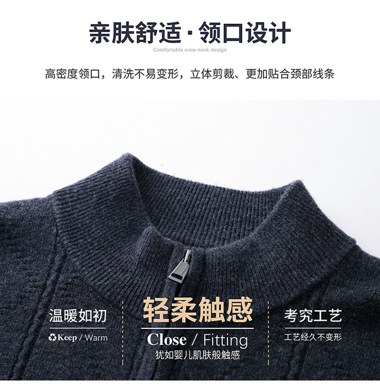 圣彼嘉100纯羊毛衫开衫男针织衫拉链