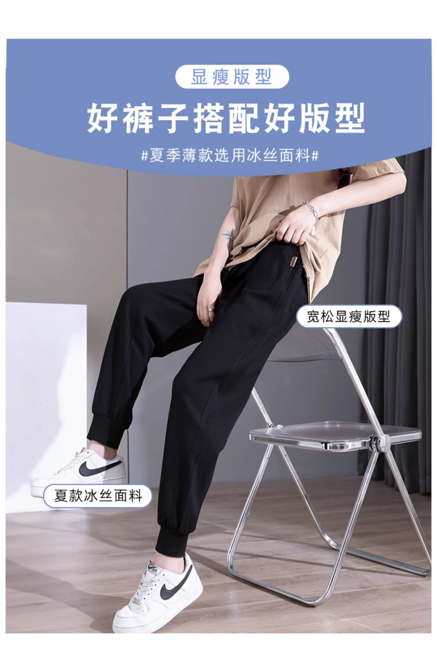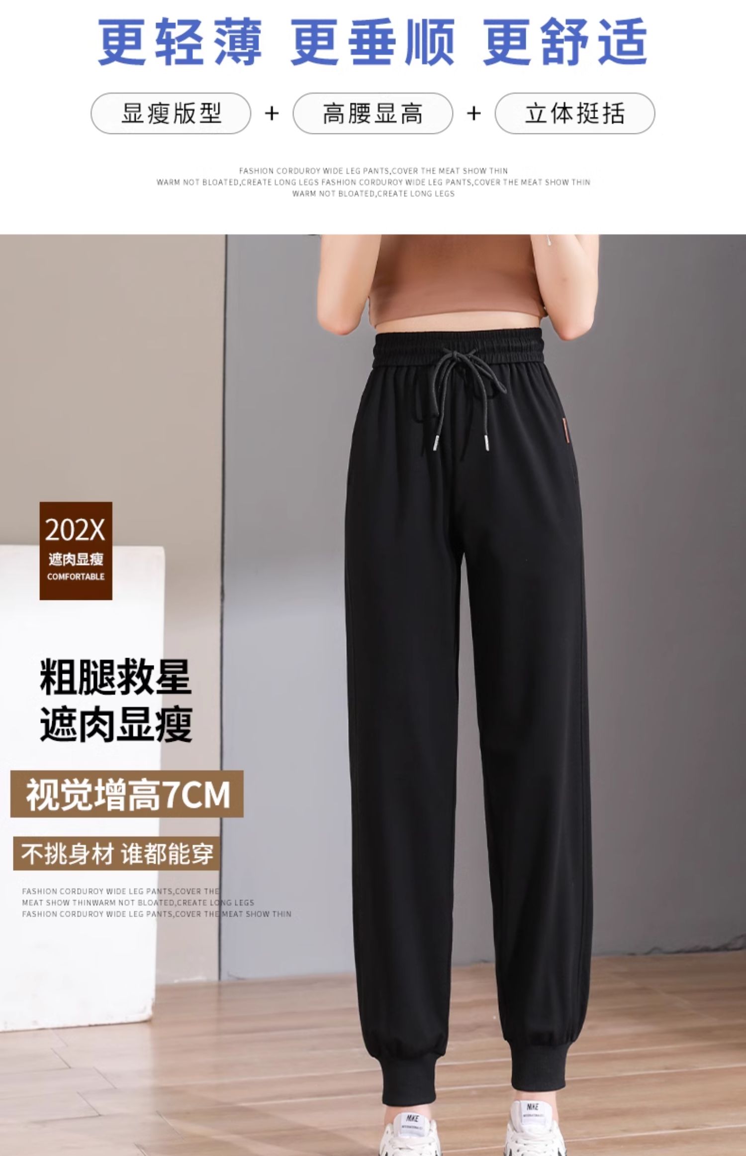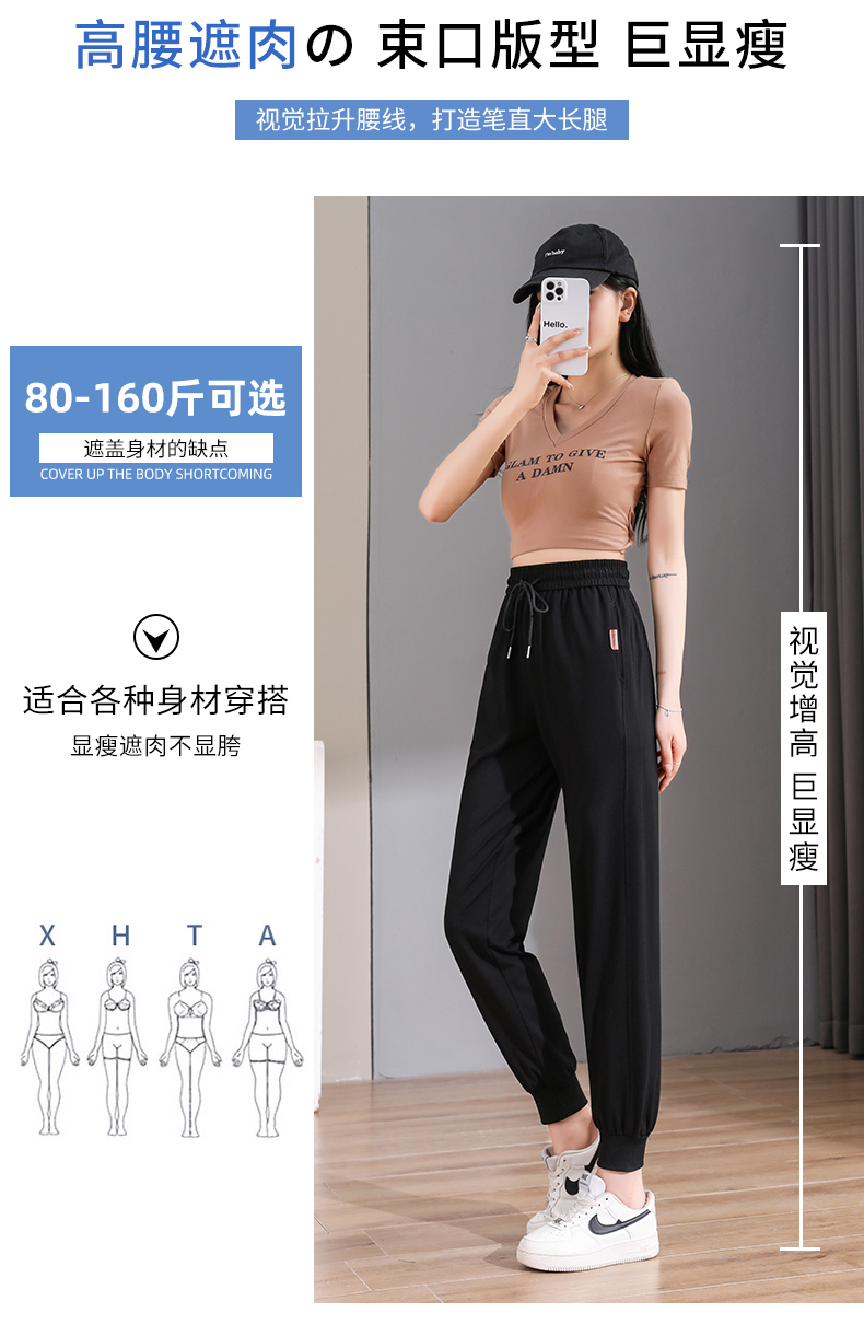 黑色运动裤女春秋2025新款束脚大码小个子休闲哈伦裤卫裤子夏薄款