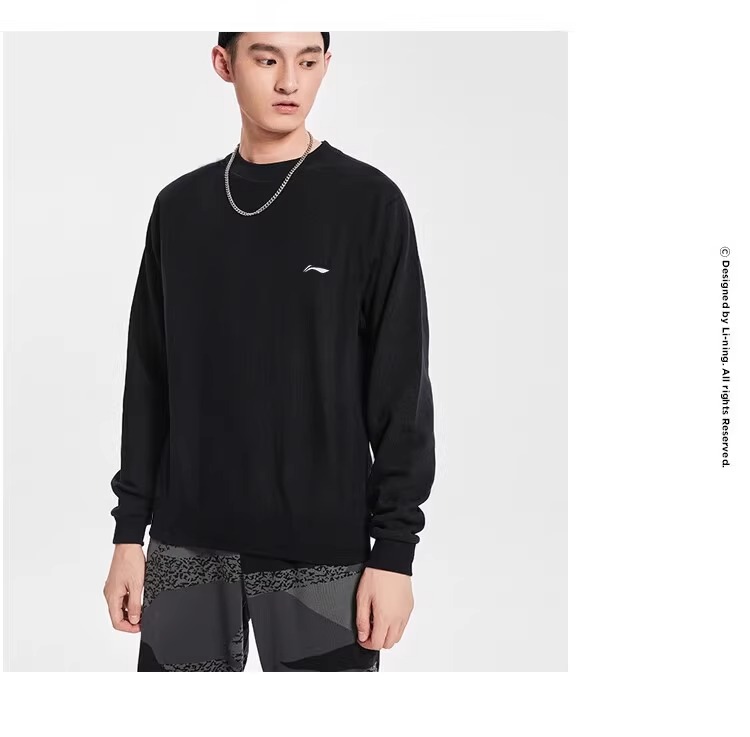 李宁卫衣男春秋新款黑色圆领套头衫正品大码宽松外套休闲长袖上衣