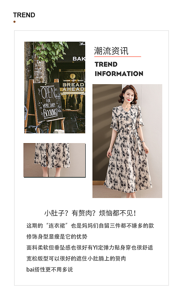 妈妈夏装连衣裙气质2025新款时尚高贵中老年女人夏季收腰裙子洋气