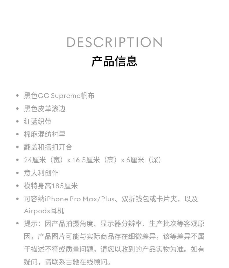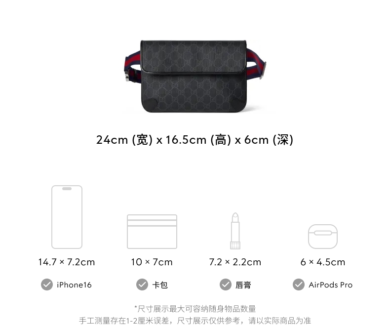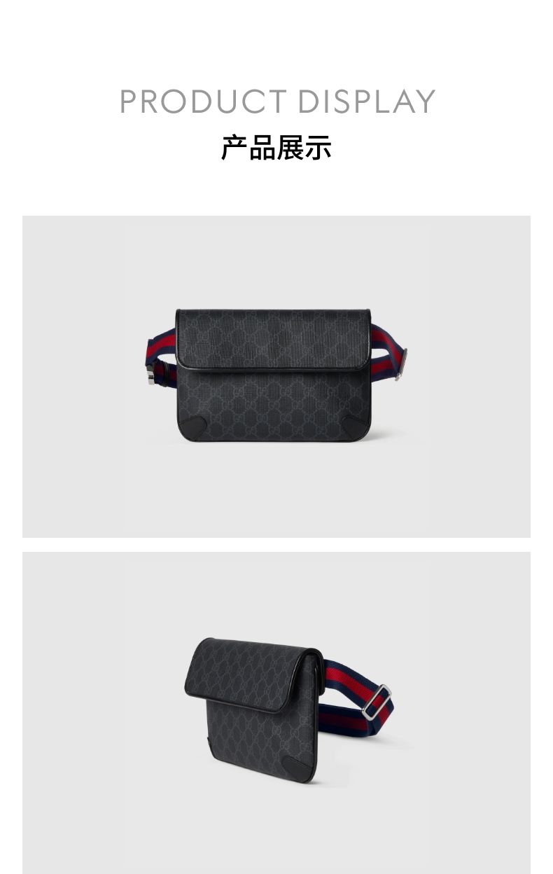 [七夕礼物]GUCCI古驰GG黑色小号腰包斜挎包