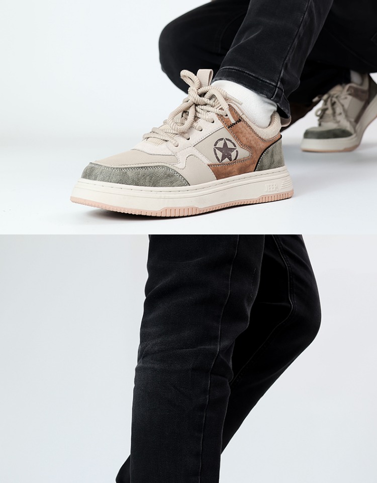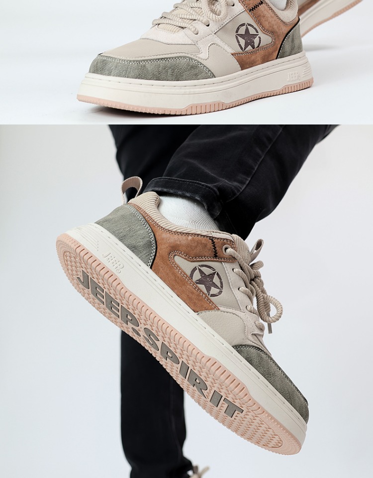 jeep吉普男鞋夏季低帮复古板鞋男拼色百搭厚底防滑耐磨男士休闲鞋