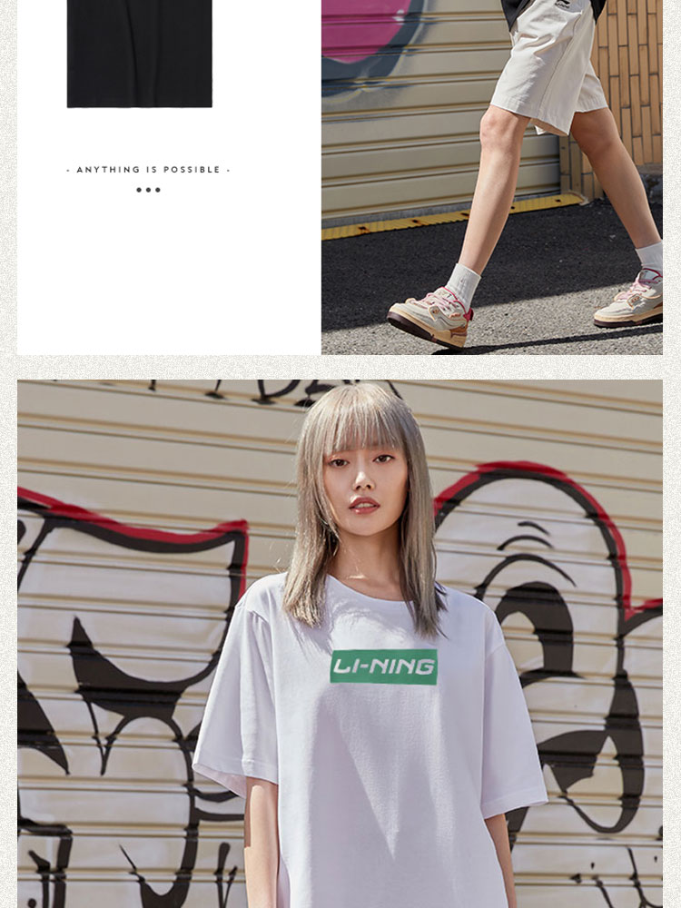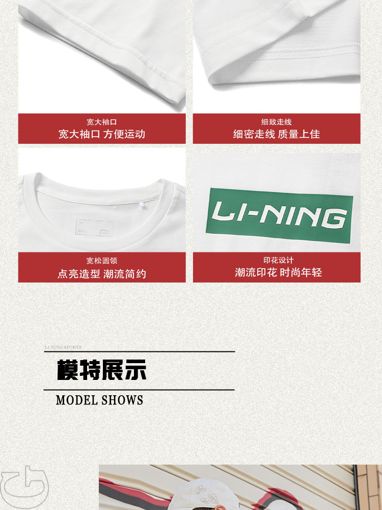 李宁短袖T恤男夏季正品2025新款宽松棉休闲ins潮半袖白色体恤上衣