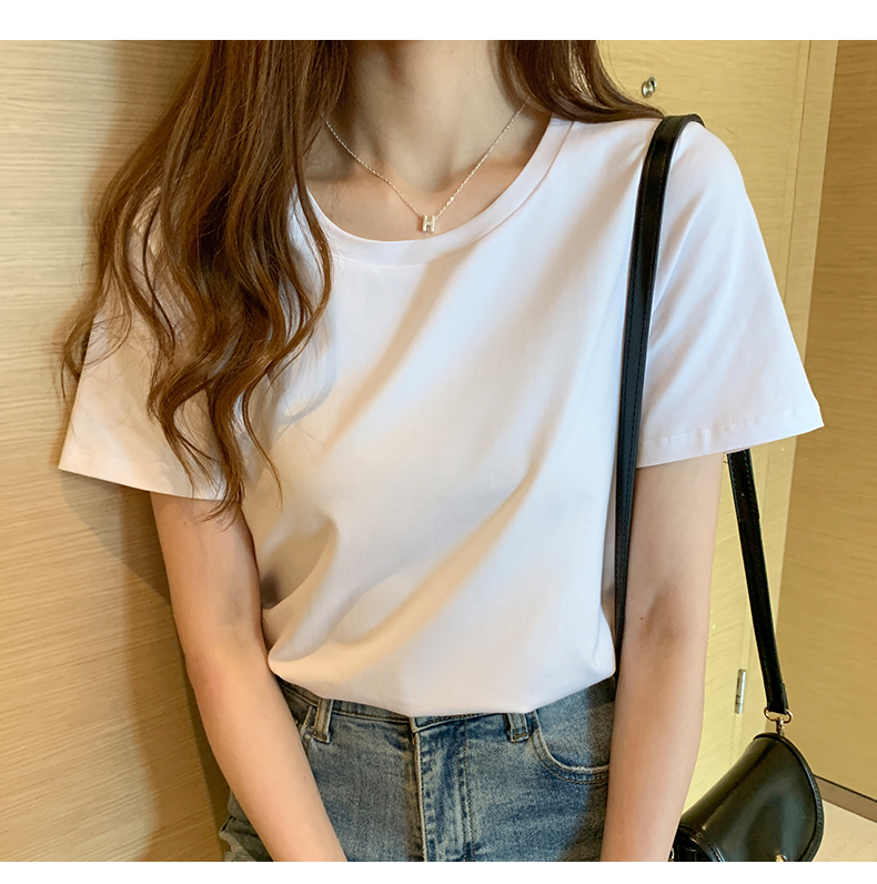 纯棉白色t恤女短袖夏季2025新款宽松薄款打底衫内搭纯色显瘦上衣