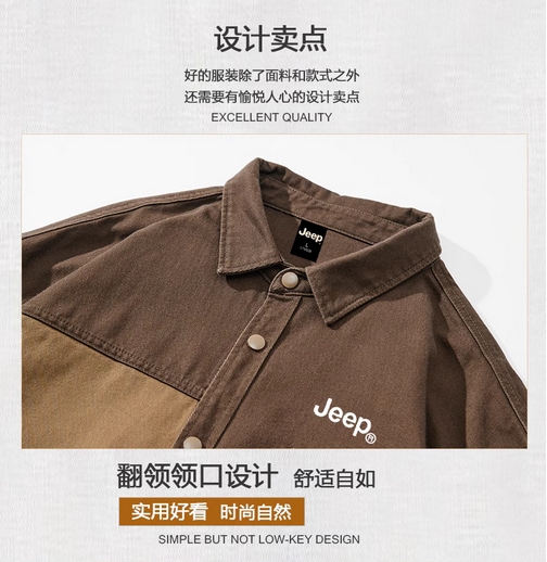 JEEP吉普纯棉牛仔衬衫男士2025新款春秋款拼色衬衣痞帅外套上衣服